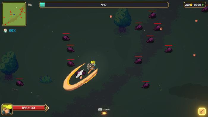 击退成群的怪物,用各种武器和物品填满你的背包,一路击败强大的Boss!随着角色等级的提升,每次冒险都会有所不同,解锁新的武器、物品、遗物和能力。