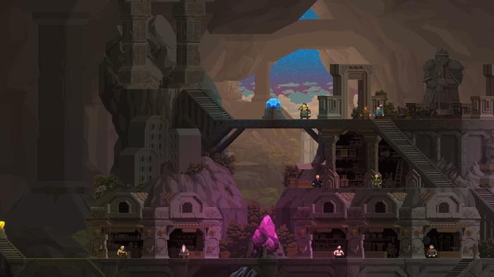 游戏玩法:扮演矮人勇士探索废墟国度;战斗怪物收集资源,建造升级基地;救援失散同胞,解锁技能与建筑,逐步重建矮人文明。